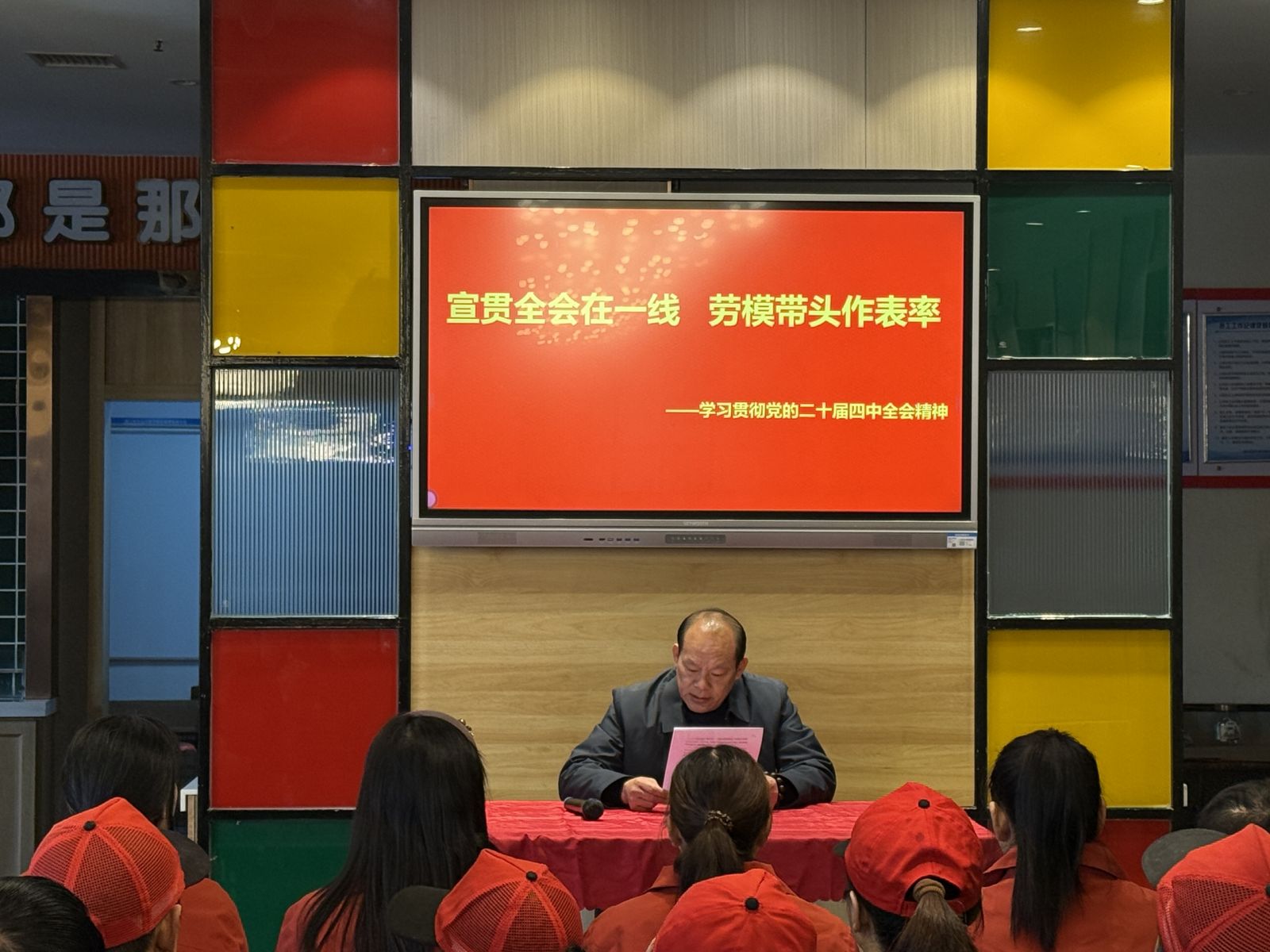 为推动党的二十届四中全会精神在基层落地生根,充分发挥劳模示范引领作用,近日,五七小李子工会组织开展“劳模带头讲全会”专题宣讲活动。潜江市劳动模范李代军向全体职工宣讲党的二十届四中全会精神,传递奋进力量。