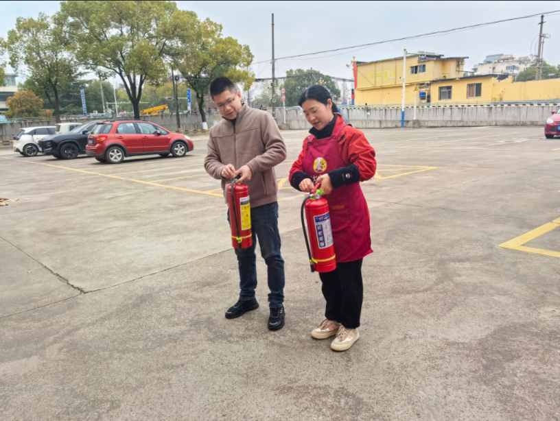 理论培训结束后,紧张有序的实战演练随即展开。演练第一环节为“模拟灭火”。在专业人员的指导下,员工们轮流操作干粉灭火器,针对模拟火源进行扑救练习。从拔销子、握管子、压把子到对准火焰根部喷射,一系列动作在反复实践中逐渐熟练,员工们基本掌握了扑救初期火灾的关键技能。