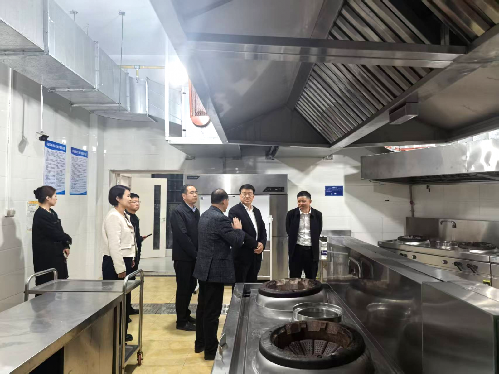 冯家欣主席一行首先参观了李代军大师工作室的文化墙,了解了油焖大虾的发明起源和潜江龙虾产业的发展历程。随后,领导们实地考察了工作室的各个功能区,包括办公室、配方研发区、小试实验区、烹饪演示区、烹饪实训区及会议讨论区。