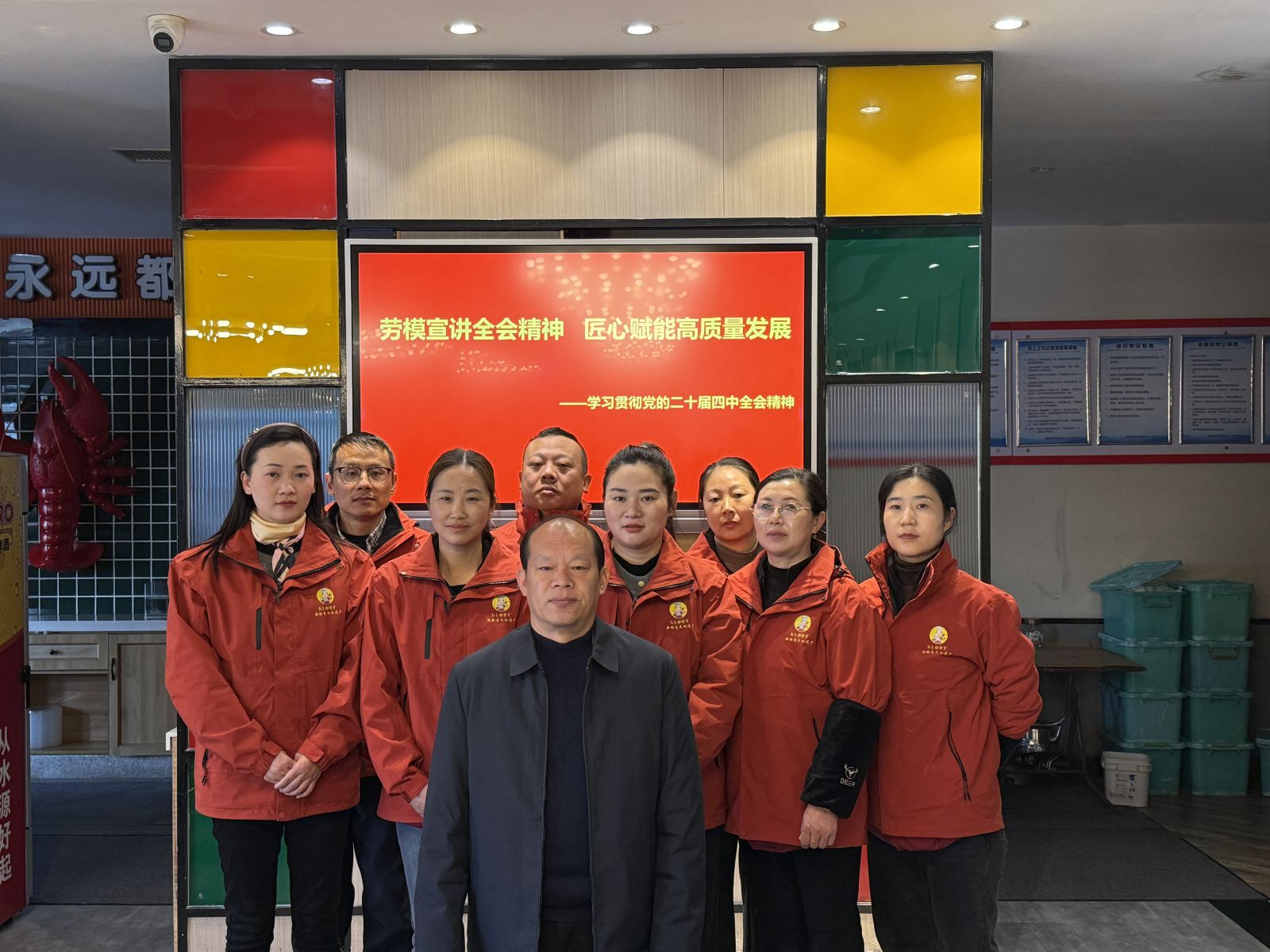 李代军以“劳模带头讲全会 凝聚奋进力量”为主题,结合自身从普通的餐饮人成长为劳模工匠的经历,分享了学习党的二十届四中全会精神的深刻体会。宣讲没有枯燥的理论堆砌,而是用朴实的语言,将宏大的国家治理话题与日常工作紧密相连。